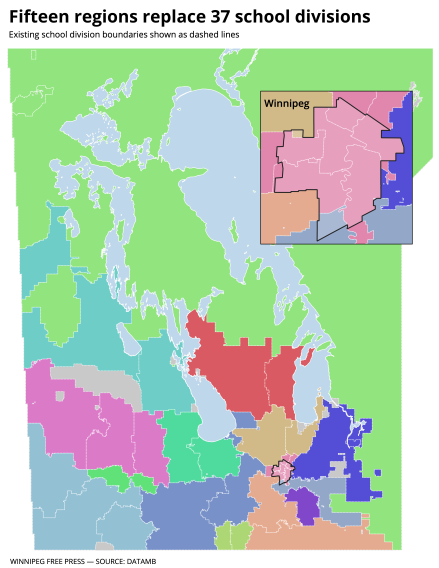 The six existing Winnipeg-area school divisions will be consolidated into one region.