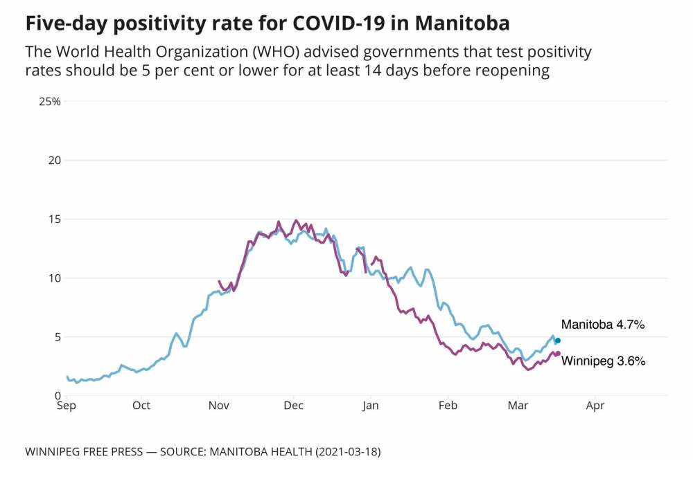 Infectious disease experts in Manitoba have also urged caution in reopening the economy too quickly and have warned renewed lockdowns could be necessary as early as May, even if variant strains do not become dominant.