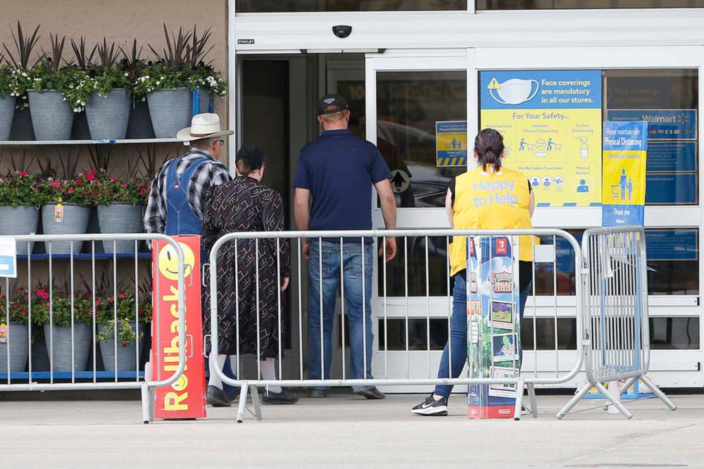 A Free Press photographer observed a handful of people without masks entering and exiting Winkler’s Walmart over an hour or so late Tuesday afternoon.
