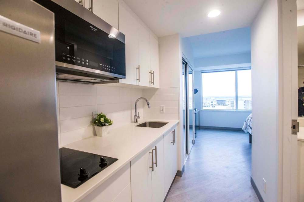 The complex includes 368 student-oriented, furnished rental units, with a total of 570 beds in single, double and four-person suites. The ground floor will also soon house commercial units, including a dentist office and A Little Pizza Heaven location, according to the developer.