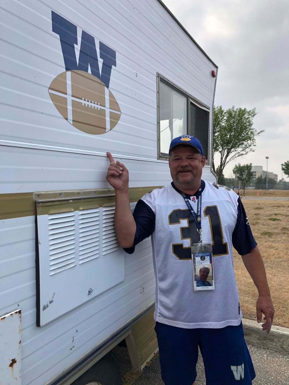 Ken Dodge borught out his 1971 Winnebago for some pre-game tailgating with family and friends (Taylor Allen / Winnipeg Free Press)