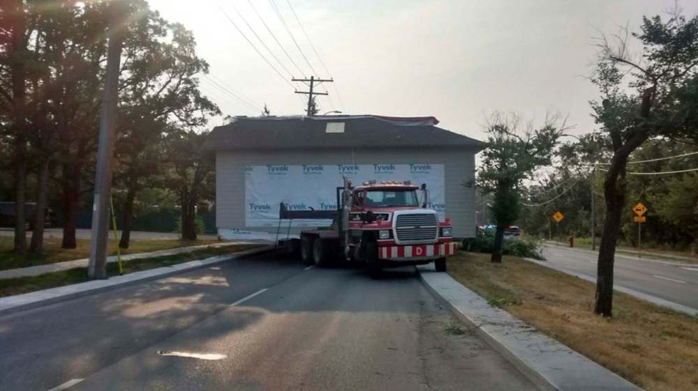 The first leg began Saturday. Early that morning, a building transport company began to move a display home located near the corner of Roblin Boulevard and Scotswood Drive.
