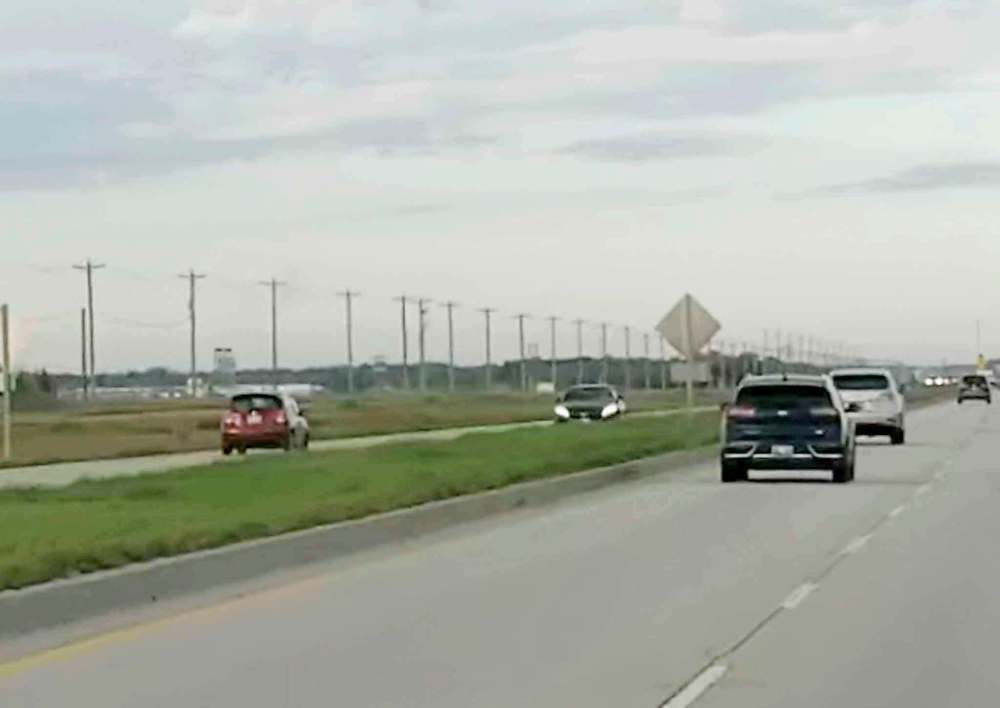 Debra Vandekerkhove spotted a small red vehicle travelling west in the eastbound lane Sunday morning. Vandekerkhove had turned off Lagimodiere Boulevard onto the Perimeter at about 7:50 a.m. and noticed people in front of her were slowing down. She looked to her left, saw the misplaced vehicle and started video recording.