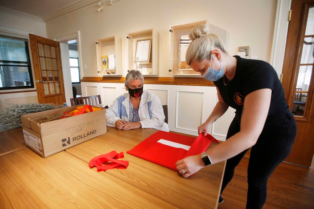 For now, they have a package of records to send out. At the table, Genaille calls for help from Trinity Tomm, an office assistant; the elder has been teaching NCTR’s staff about the traditional ways, the way she was once taught by elders herself. Tomm takes the folder and wraps it in red cloth, taking care to ensure the edges are neatly lined up.