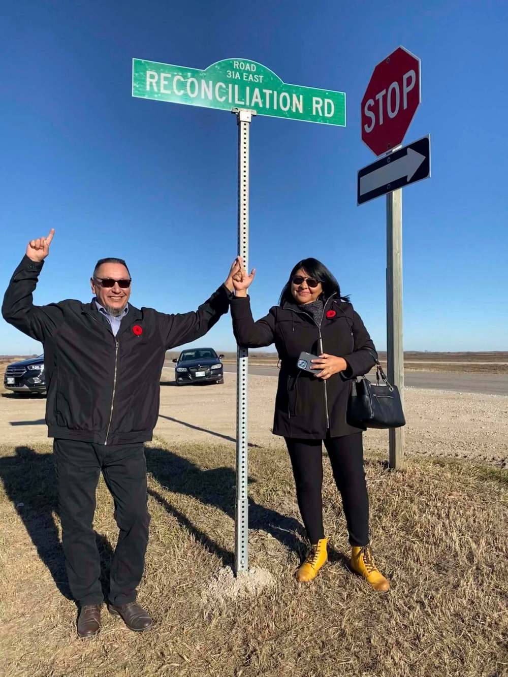 The accomplishment was having the name of a dirt road on the south side of Highway 59 in the RM of St. Clements previously known as Colonization Road officially renamed. The highway runs adjacent to Brokenhead Ojibway Nation, about 45 minutes north of Winnipeg.