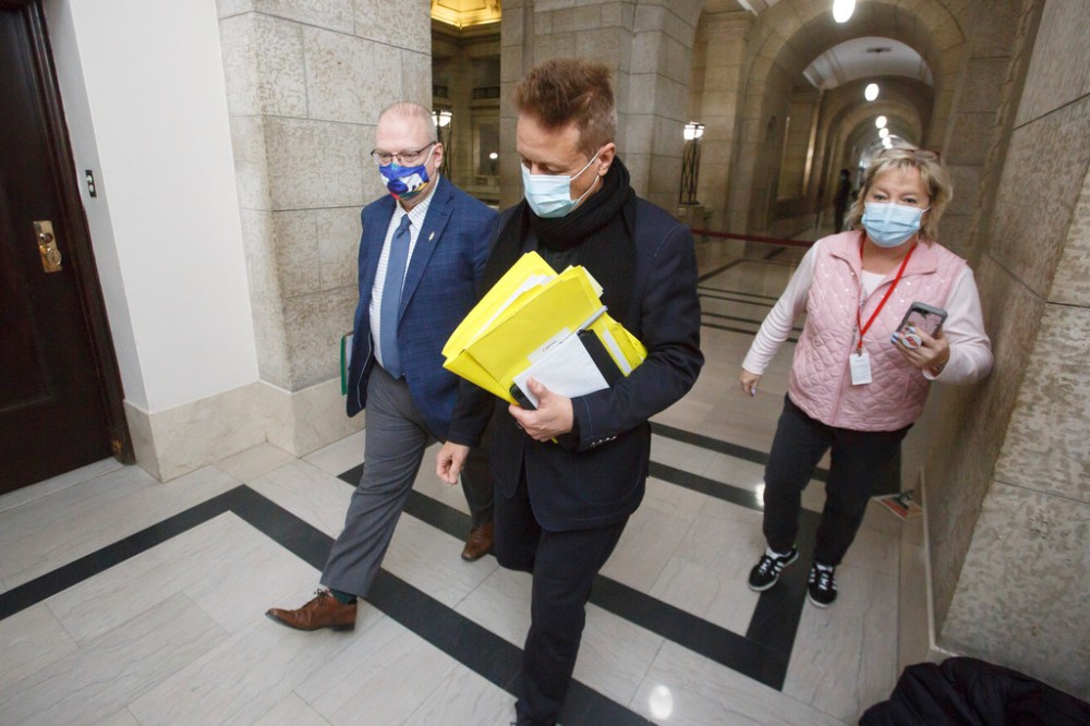 After the ministers left the morning meeting at the legislature, he was escorted by government house leader Kelvin Goertzen, who talked to Schuler non-stop from the cabinet meeting room to Schuler’s office nearby. Neither minister responded to a Free Press reporter’s questions.