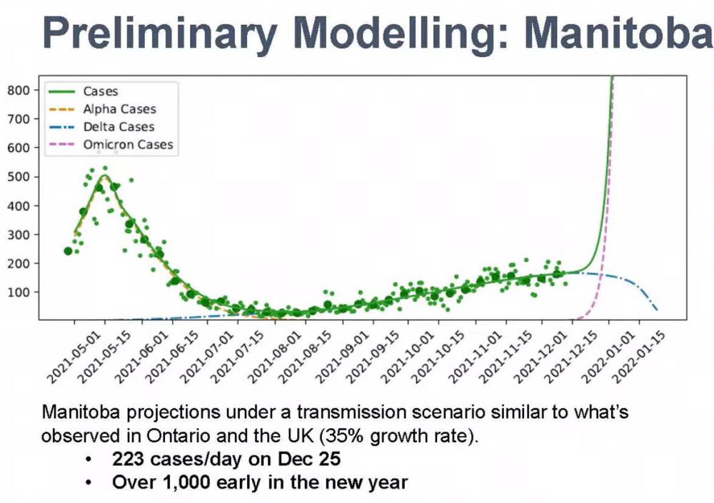 Health officials pleaded with Manitobans to scale back holiday gatherings Wednesday, warning the province could be dealing with as many as 1,000 new COVID-19 cases a day next month if the omicron variant takes hold.