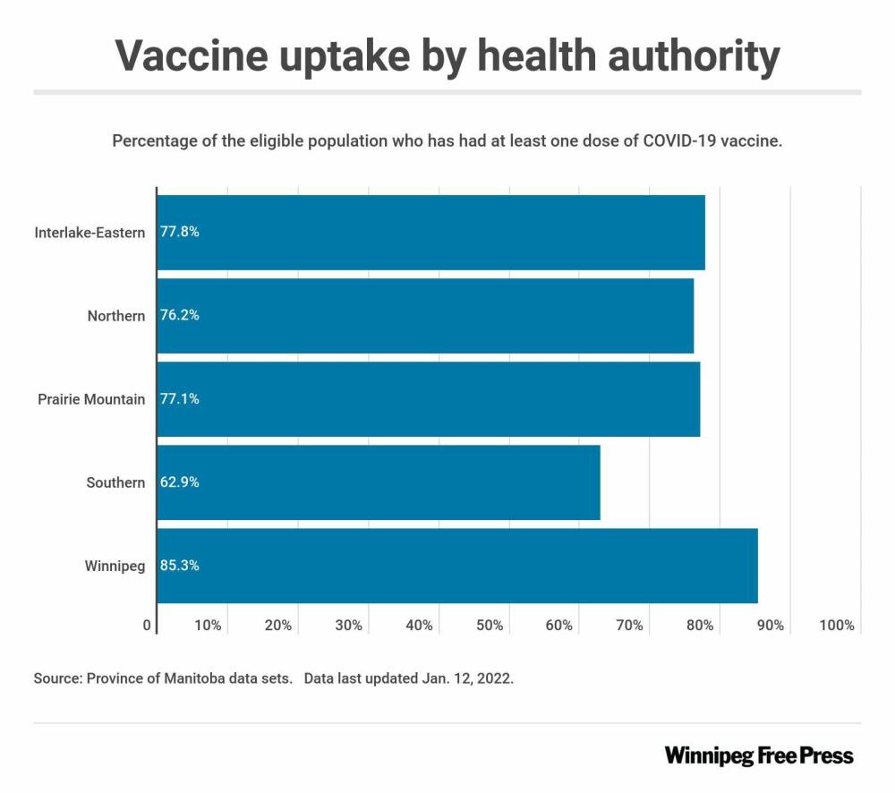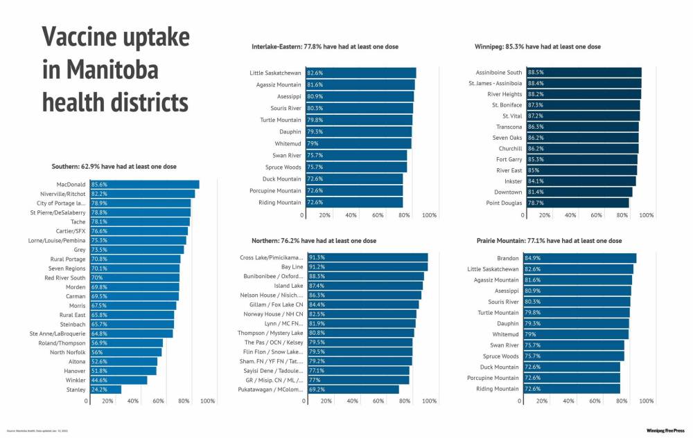 Just less than one in four people in Stanley have received two doses, and just over one in five have only one. Comparatively, 40.8 per cent of Winkler’s eligible population have two doses, as do 63.5 per cent of Morden residents.