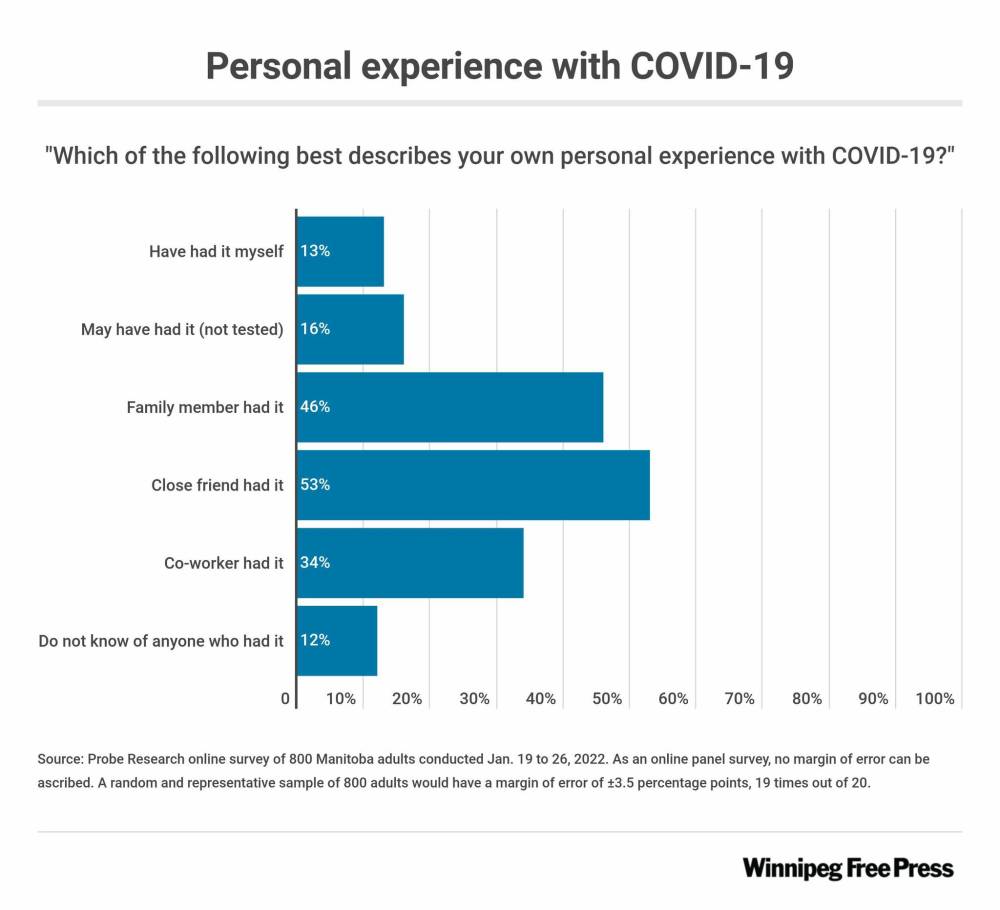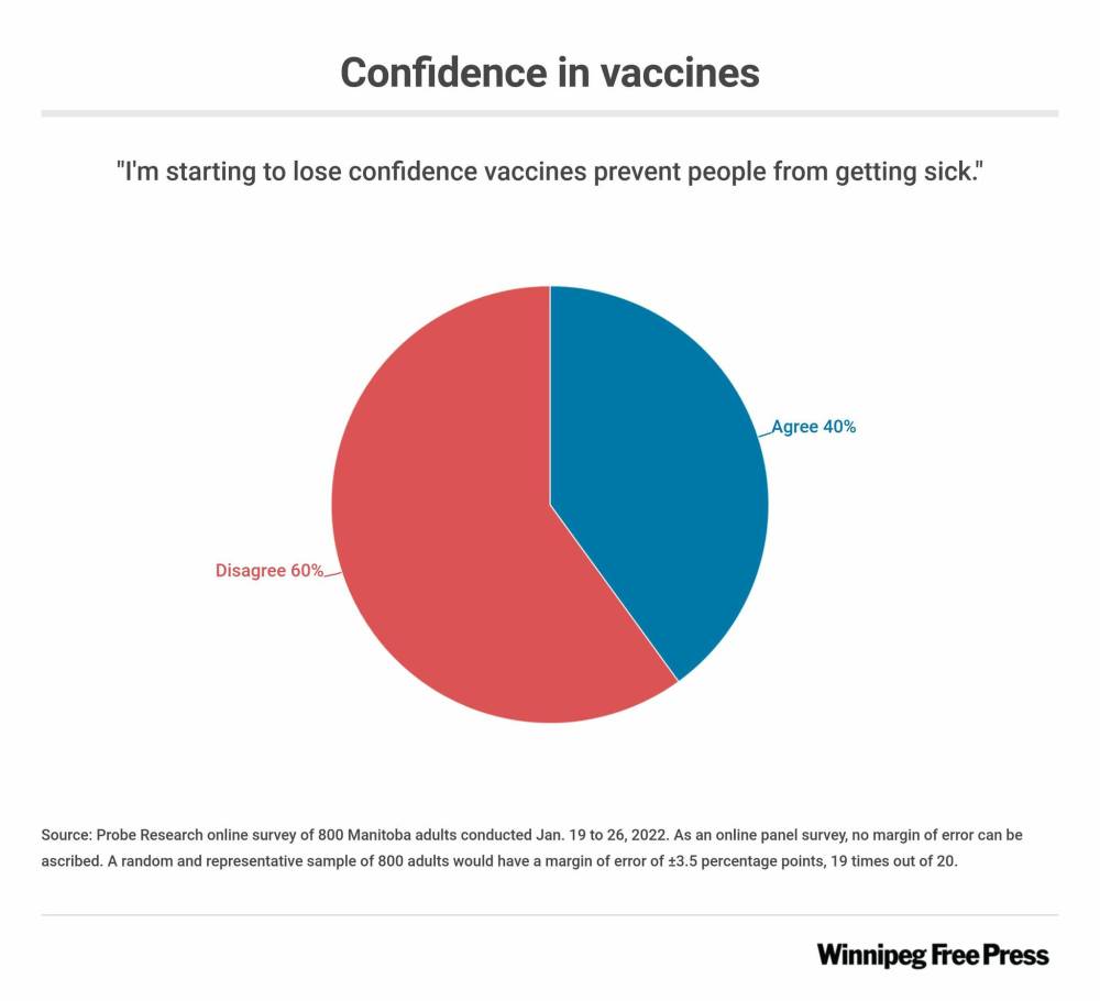 A Probe Research poll of 800 Manitoba adults found four out of 10 agree they are starting to lose confidence in the vaccine preventing people from getting sick. About eight in 10 Manitobans believe they have had COVID-19 or know someone who has had it.