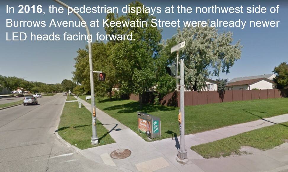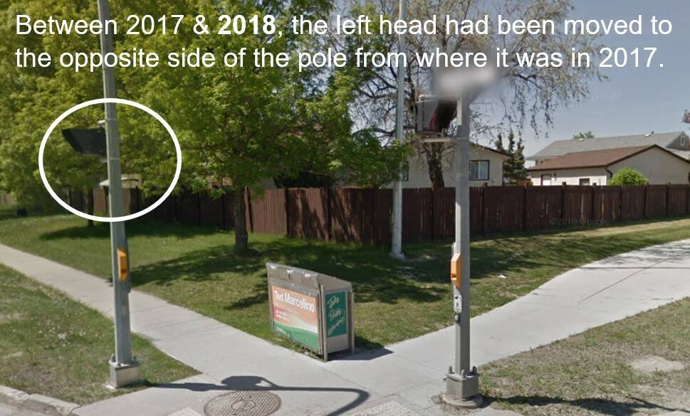 One pattern Sweryda has uncovered involves pedestrian lights, most of which in Winnipeg were installed to face the same direction as the traffic lights at any given intersection.
