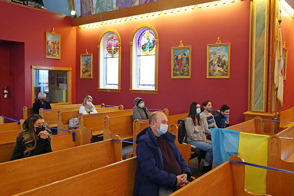 The church, normally full of life, was a solemn place Thursday evening as the reverend offered prayers in both Ukrainian and English.