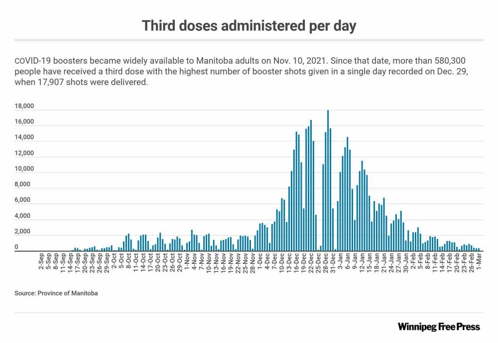 On Wednesday, deputy chief provincial public health officer Dr. Jazz Atwal said uptake of third doses has been strong among the most vulnerable Manitobans, with just over 70 per cent of people 50-plus boosted.