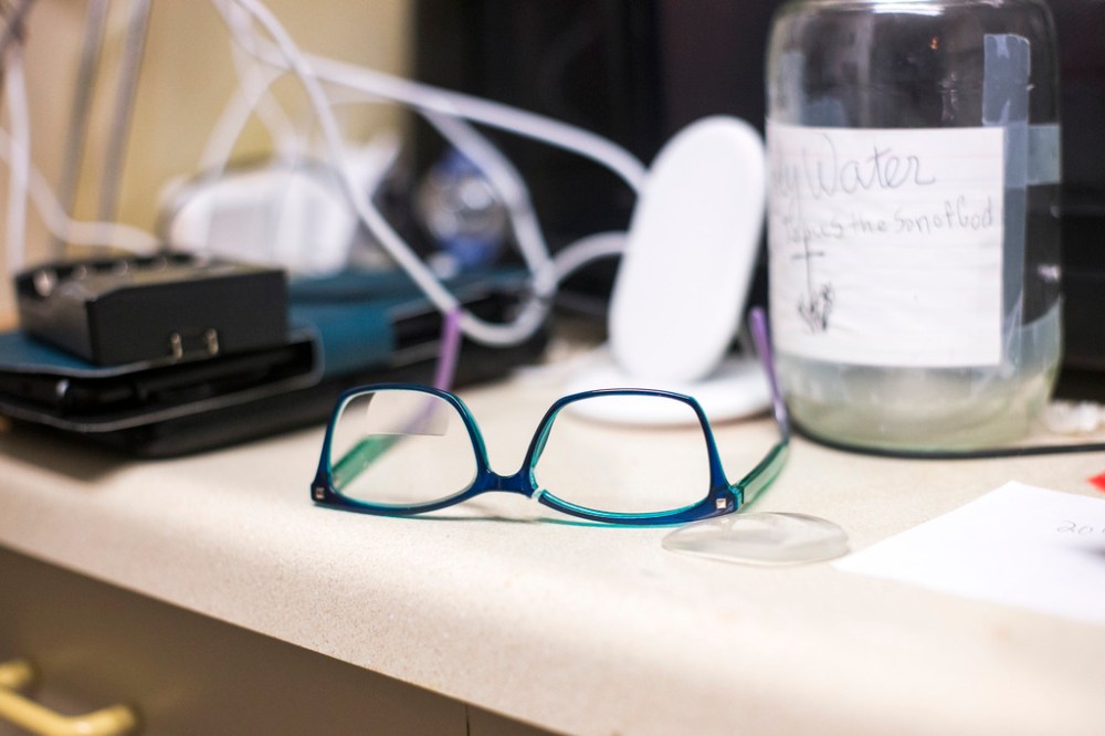 As the bridge of her eyeglasses snapped in half, a jagged piece punctured skin near her eye.