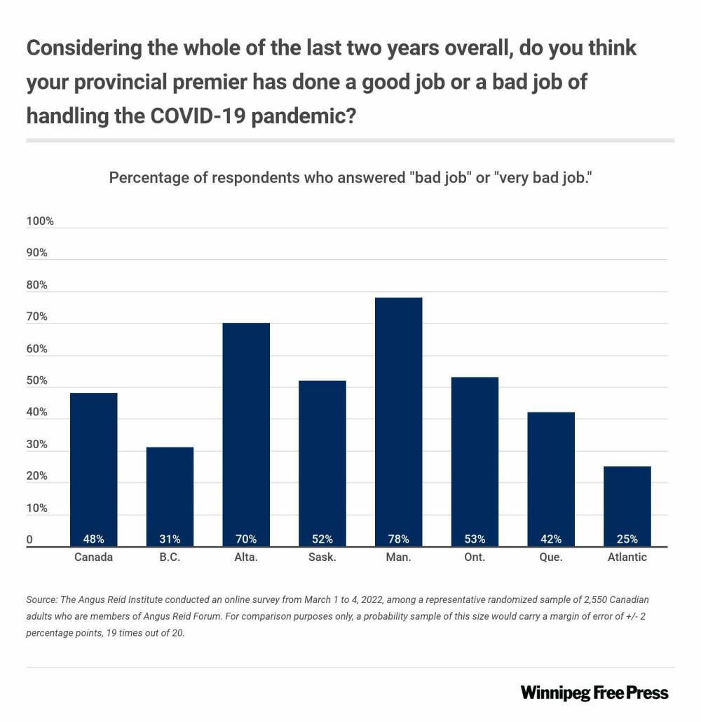 Shortly after that change had taken place, between March 1 and 4, the non-partisan polling firm surveyed 2,550 Canadians, including 162 Manitobans, on how they feel about how provinces have managed the pandemic.