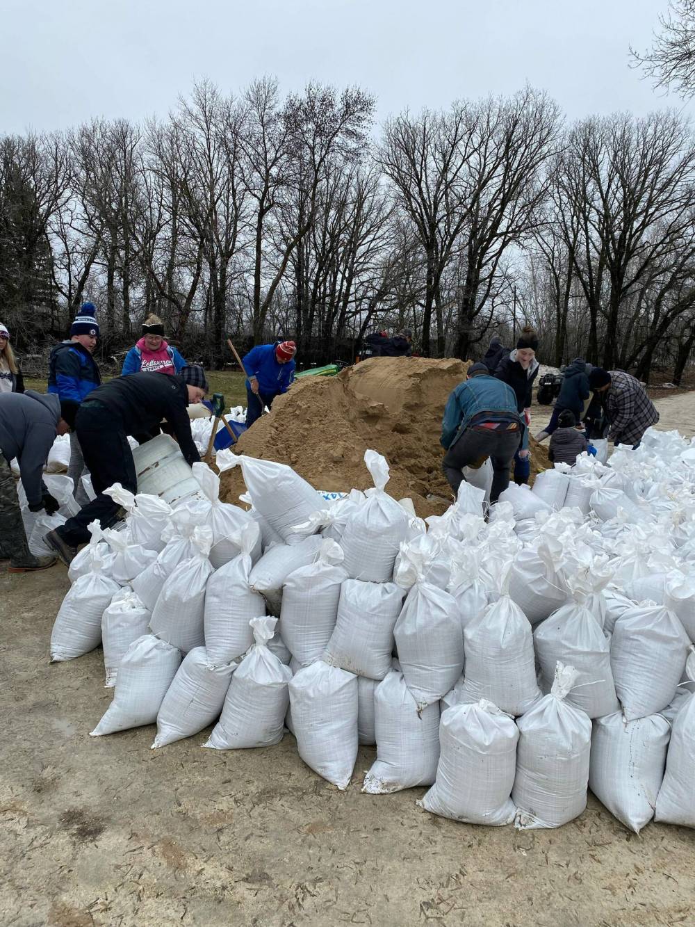 West Interlake is operating a diversion and trying to source more tractor pumps. It ordered 25,000 sandbags from the province, filling about 2,000 by Wednesday afternoon.