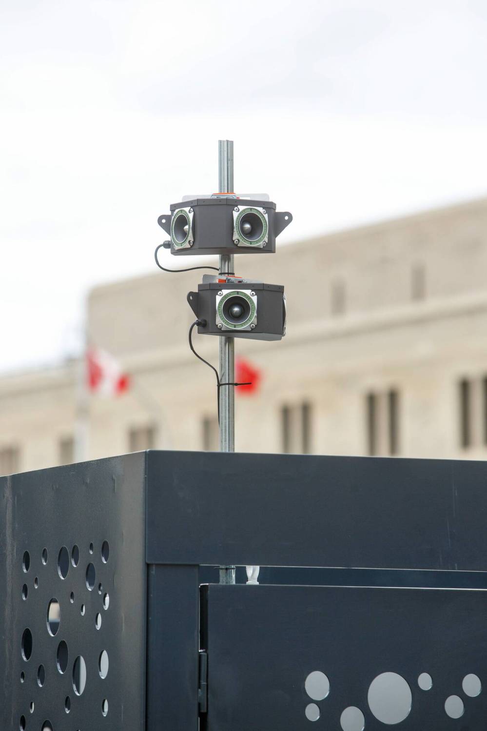 The device can produce calls of up to 40 species, including distress cries of regional birds and the calls of birds of prey, the province said. The province has also set up decoy birds in the park and near the legislature.