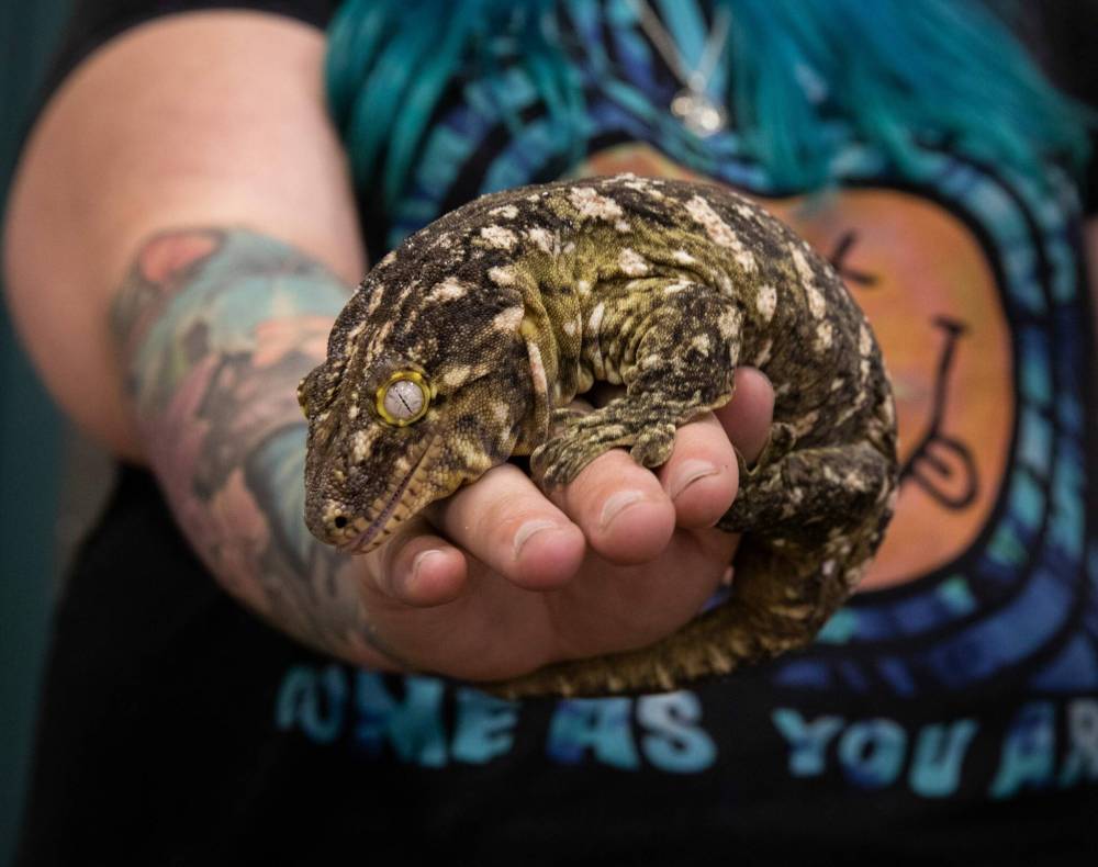 Hannah Jensrud and Maximus, a five-year-old gecko, were part of the at The Manitoba Reptile Breeder’s Expo at the Sunova Centre Sunday.