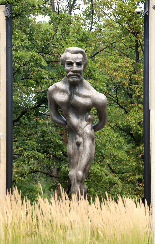RUTH BONNEVILLE / WINNIPEG FREE PRESS FILES A 12 foot high sculpture of Louis Riel created by artist Marcien Lemay. The statue which was initially placed on grounds of Manitoba Legislature was relocated to St. Boniface College where Louis Riel was once a student.