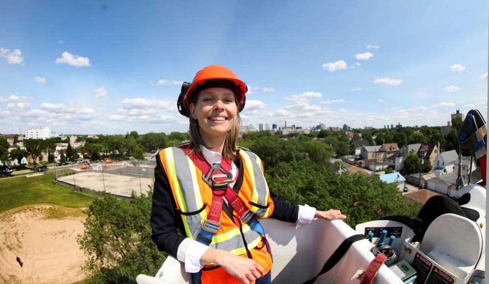 Martha Barwinsky, here overlooking the city, says plantings will proceed weather permitting. (Ruth Bonneville / Winnipeg Free Press)