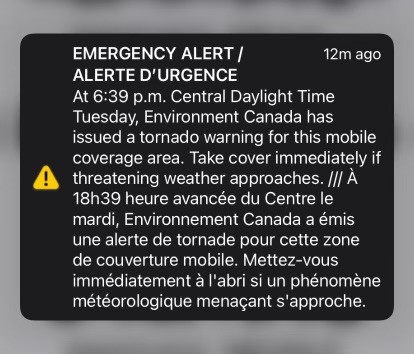Some Manitobans didn’t receive emergency alerts on their smartphones when a tornado touched down east of Teulon Tuesday evening, renewing longstanding concerns about Canada’s national warning system.