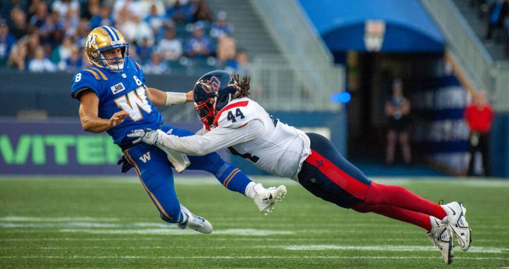 Zach Collaros suffered two of his five sacks against in the opening quarter, with Montreal’s Mike Moore and Michael Wakefield getting to the Bombers pivot behind the line of scrimmage. Willie Jefferson registered his fourth sack — and first since Week 6 — to stall an Alouettes drive near midfield, in what was the only time the Bombers could get to Trevor Harris for a loss of yards.