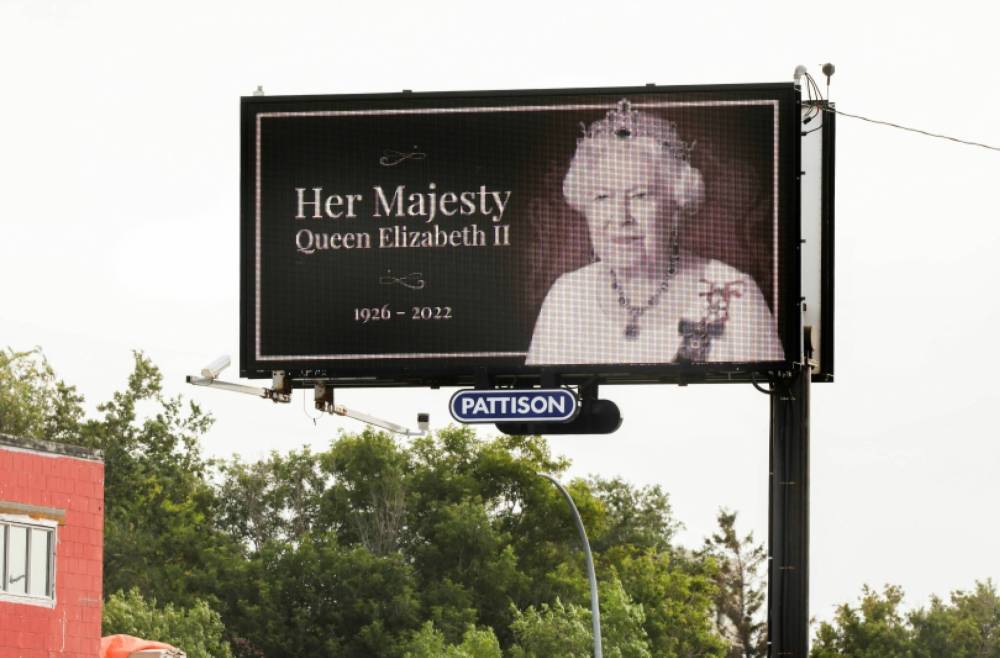 RUTH BONNEVILLE / WINNIPEG FREE PRESS Advertising honours Queen Elizabeth II with a digital billboard on Route 90 near Silver Avenue on Thursday.