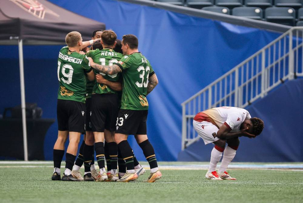 Valour FC’s Raphael Ohin reacts to Calvary FC celebrating a goal during a July match. Ohin said Tuesday Princess Auto Stadium has been his ‘second home.’