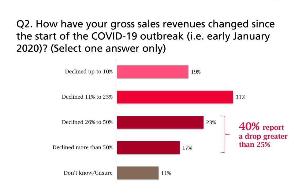 What is particularly stark is that one-quarter of the almost 9,000 respondents said they will not be able to survive if sales fall below 50 per cent.