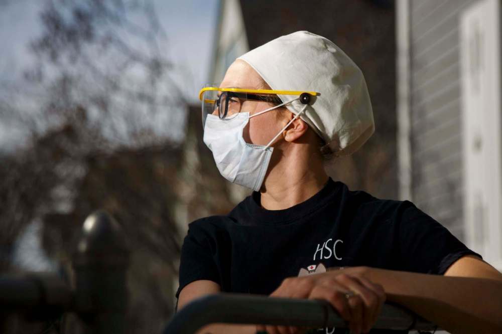Much to the teacher’s delight, the simple, handmade caps have become a symbol of how a community can give back to health workers putting themselves at risk.