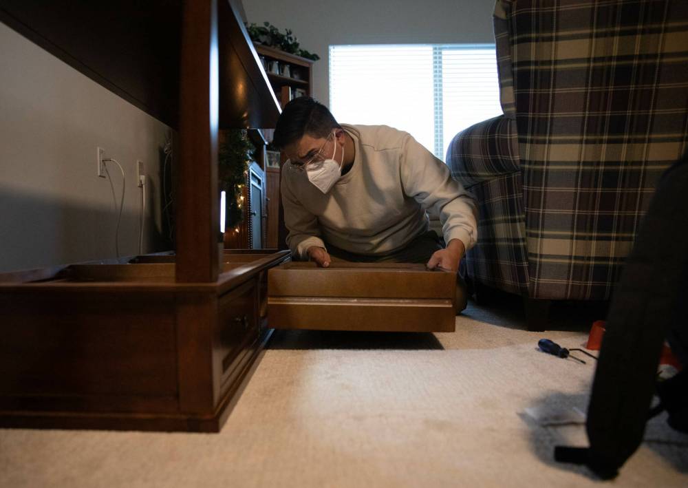Bowers, 29, flits from house to house, constructing bookcases, bed frames and whatever his client needs. He’s mastered IKEA, Jysk and Wayfair products, timing himself to see how long a job takes.