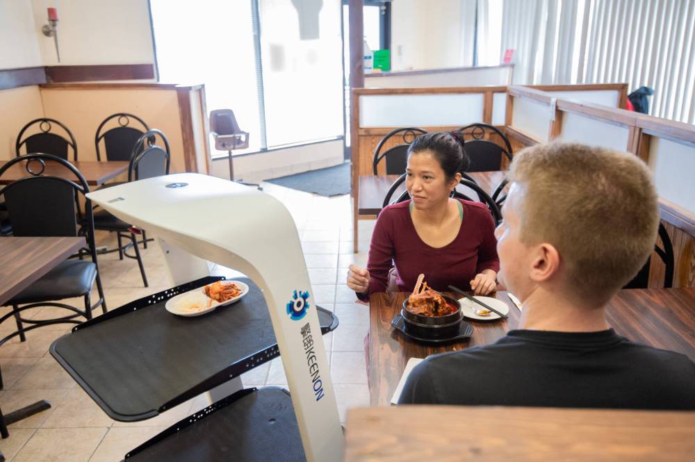 Dirk Wang hasn’t yet named his robotic assistant. Still, the automaton has become well-known at Hong Du Kkae, a Korean eatery, this winter. It’s creating an in-person dining presence that has lacked over the past two years, Wang said.