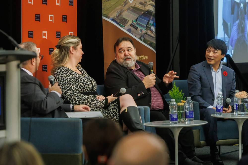 MCC President and CEO Chuck Davidson (left) hosts a panel discussion with (from left) Carly Edmundson, CentrePort Canada Inc., David Kakuktinniq, Sakku Investments Corporation & Nukik Corporation, and Chris Avery of Arctic Gateway Group, during the Manitoba Chambers of Commerce breakfast event at the Delta Winnipeg Hotel Wednesday.