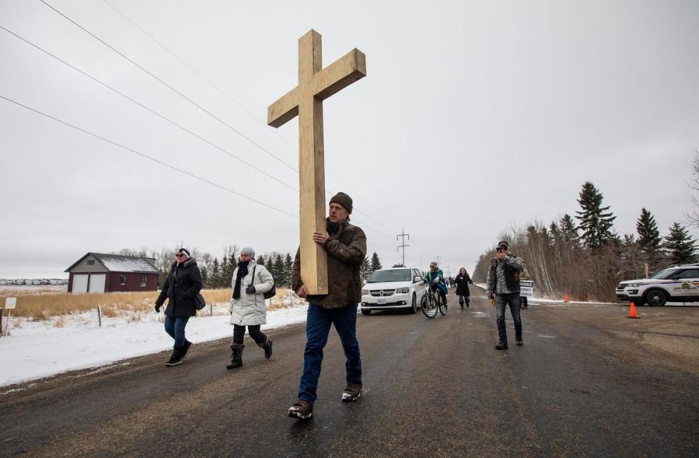 Meanwhile, caught up in the dispute are members of the Enoch Cree Nation — separated from the church by a strip of highway — who were forced to contend this past weekend with protesters spilling onto their land to park, ignoring signs and going around blockages.