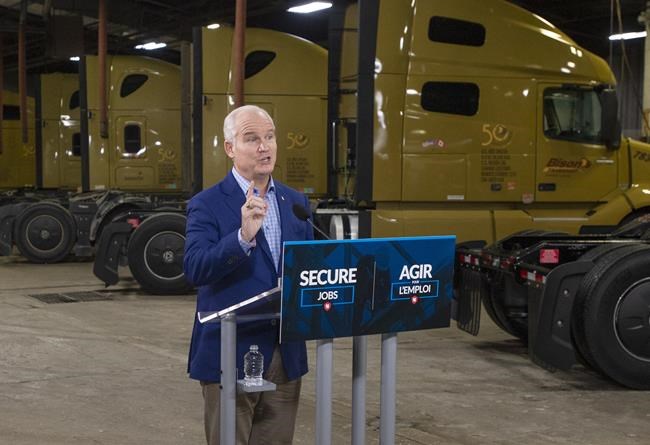 O’Toole made the lane change on Friday at a long-haul truck company warehouse on the outskirts of Winnipeg, where he was joined by prominent Manitoba Conservative MPs Candice Bergen and James Bezan.