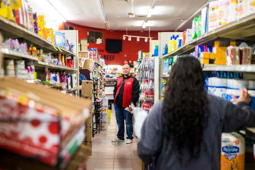 The small store is quiet now, shelves ravaged from another busy day, but there are still a few packages of toilet paper and Lysol wipes and three small bags of all-purpose flour in stock — a veritable holy trinity of most-wanted items during this pandemic.