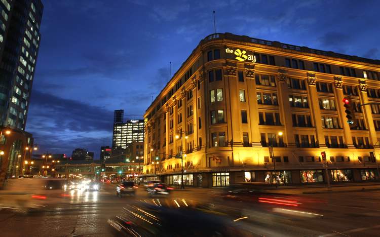 In Winnipeg, it’s the Hudson’s Bay Company’s department store at Portage Avenue and Memorial Boulevard. The Eaton’s store at Portage and Donald Street was knocked down in 2002-03 to make way for the MTS Centre.