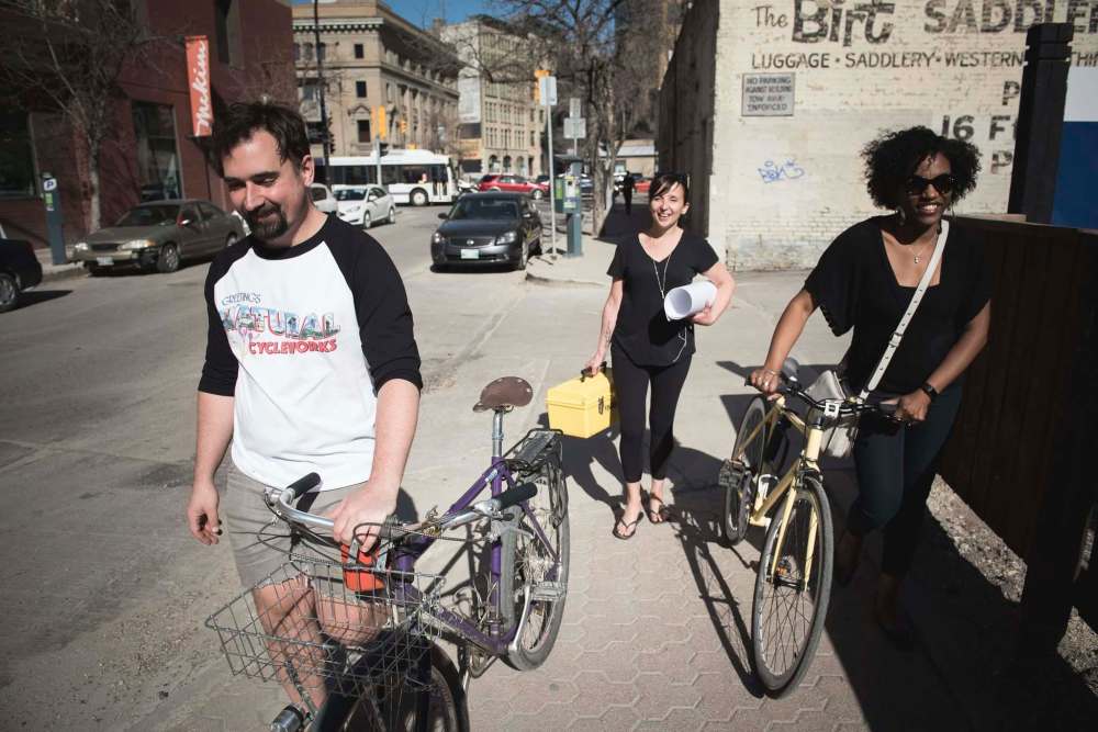 ● Bell: If folks are open-minded and see a whole bunch of cyclists, they would be like, “Wouldn’t it be nice if these people had a proper lane to cycle on?” as opposed to thinking, “These people are in my way.” Open-minded Winnipeggers appreciate change and want to see their city improve. They may even get involved with the Bike Jam, and advocate for more bike lanes and bike-related infrastructure to foster more cycling in Winnipeg, versus the shaking of the fists. When I was on my first Bike Jam, there was some shaking of the fists, but they wouldn’t get out of their cars. Why? Because there were a thousand cyclists! Strength in numbers.