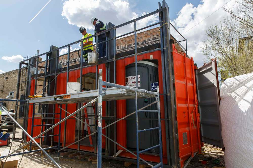 The unit, now being constructed by Keith’s Custom Sheet Metal out of a retrofitted railway shipping container — “How Winnipeg is that?” Bridgman says — contains two portable toilets, including one with wheelchair access.