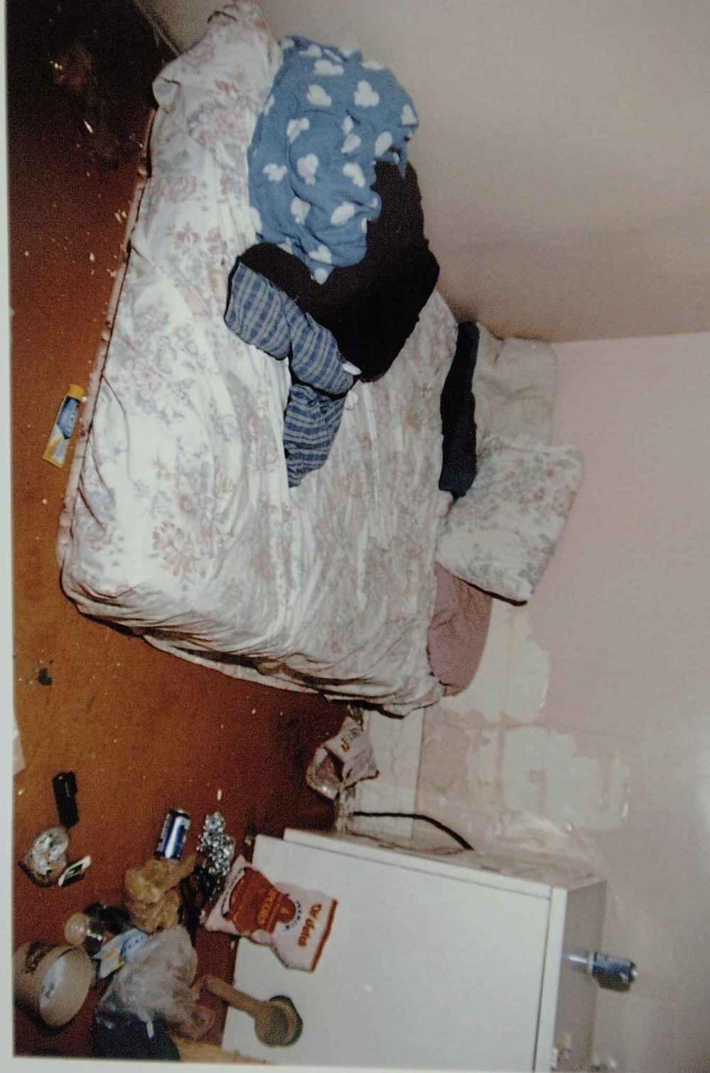 Bedding inside a house that Peter Whitmore used near Kipling, Sask., is seen in a photo used as evidence in court. (Don Healy / Leader-Post)