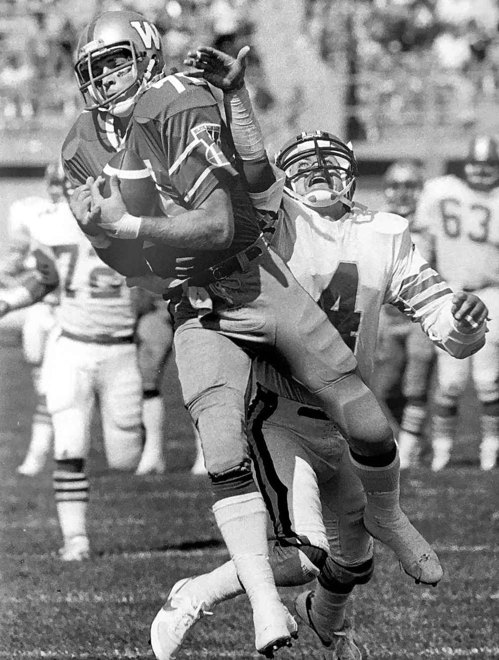 He played quarterback, defensive back, receiver and on special teams early in his pro career before finally getting his big break as Montreal’s No. 1 QB in 1980, leading the Als to an appearance in the Grey Cup game while capping an incredible breakout season by being named the CFL’s top Canadian and the East Division’s nominee for most outstanding player.