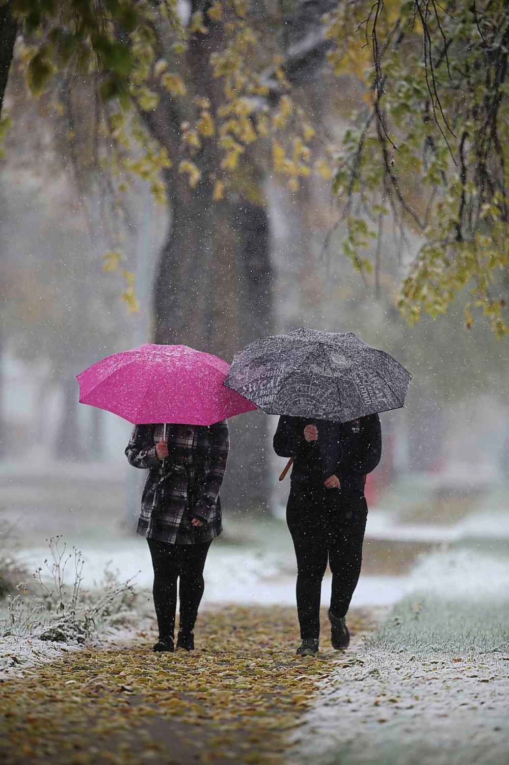 Two people walk along Clifton Street during a snowfall, Wednesday, October 3, 2018.TREVOR HAGAN / WINNIPEG FREE PRESS