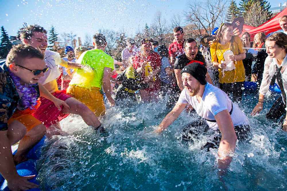 Students from the Asper School of Business jump into an icy pool to raise money for the United Way at the University of Manitoba in Winnipeg Thursday, October 18, 2018.TREVOR HAGAN / WINNIPEG FREE PRESS