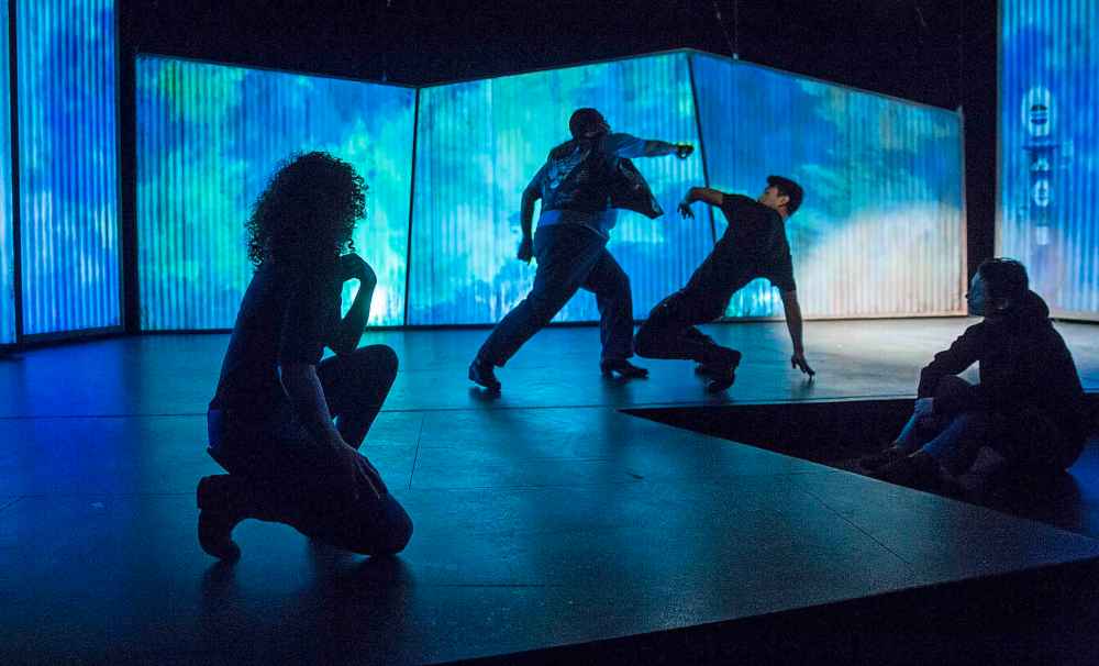 Jacqueline Loewen (left), fight director of the upcoming Royal MTC Warehouse production of Vietgone, works with actors (from left) Peter Fernandes, Simu Liu, and Jeff Yung, during a rehearsal Monday, October 29. The show runs from November 1 to November 17 . The play is notable for one elaborate four-minute fight scene based in part on old kung fu movies.MIKE DEAL / WINNIPEG FREE PRESS
