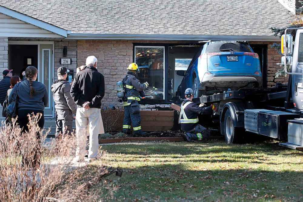 Emergency personnel were called to remove a car from the living room at 236 Handsart Boulevard Tuesday, October 23, 2018. An SUV drove through the front of the home. Police were dispatched to the scene at 2:15 p.m. While there was extensive damage to the home, no one was injured in the incident.MIKE DEAL / WINNIPEG FREE PRESS