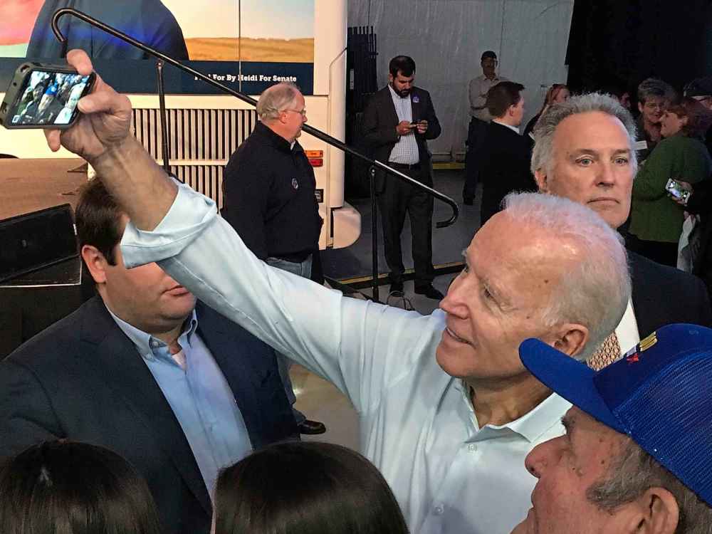 After his speech, Biden greets supporters, posing for countless photos and taking many selfies himself. He answers only one journalist’s question, when a Free Press reporter asks what he thinks about the Trump administration’s dealings with Canada.