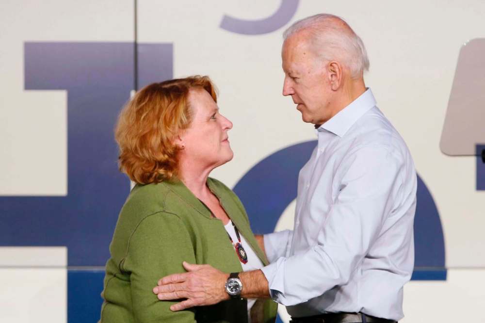 “I told Heidi a year ago I’d campaign for or against her, whichever would help the most,” Joe Biden jokes as he takes the stage.