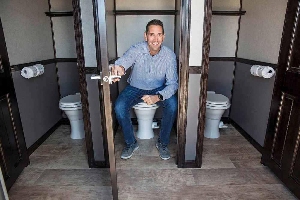 Steven Moon, president of King's Services, bought the existing port-a-potty business some 15 years ago, and grew it from a one-truck operation into a business with over 1,000 portable toilets and a staff of close to forty. The Elite V, a deluxe unit that comes with a granite counter, air-conditioning and individual, wooden stalls for both men and women.MIKE DEAL / WINNIPEG FREE PRESS