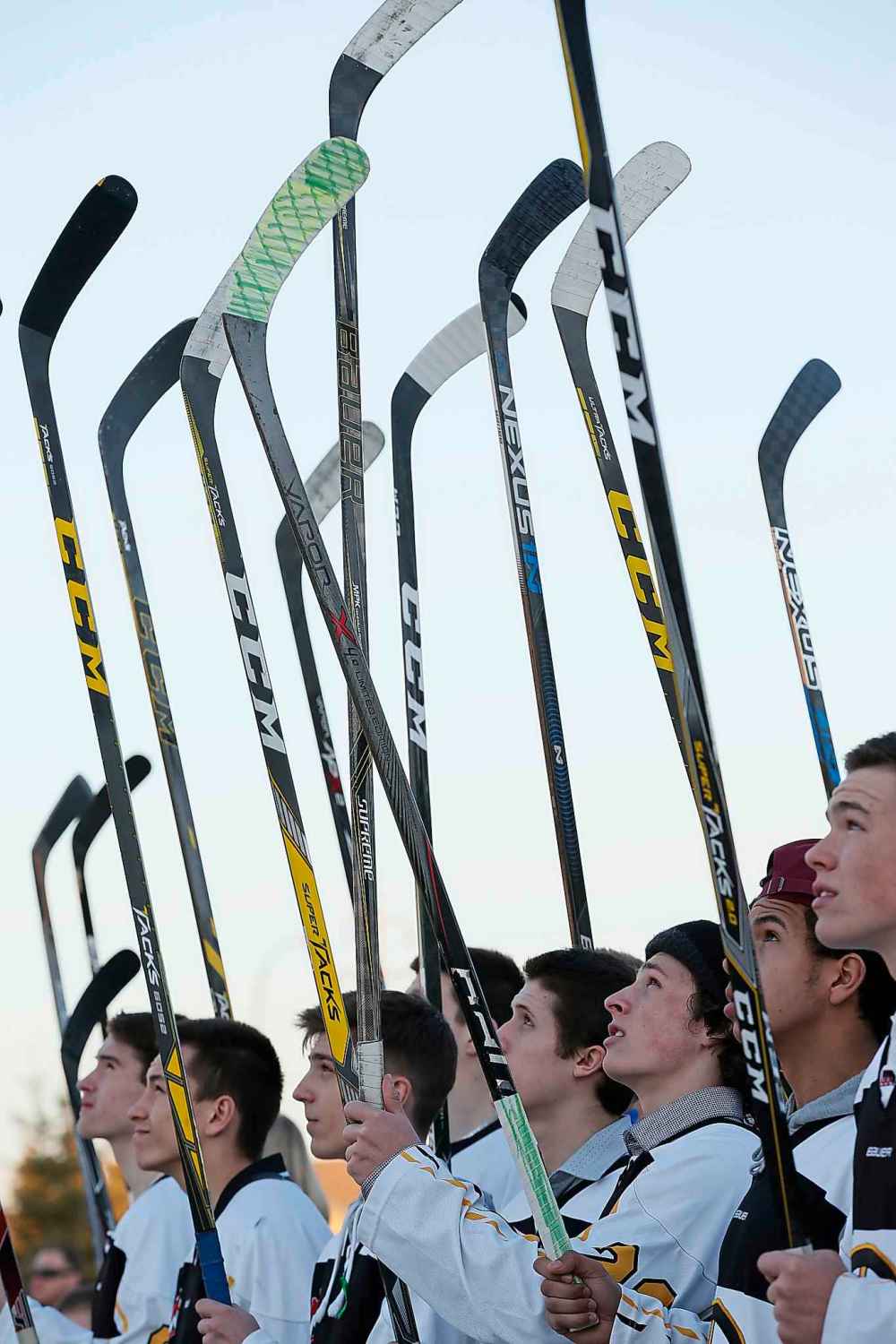 April 16 — Players raise their sticks at a Manitoba Hockey vigil for the Humboldt Broncos at My Church in Winnipeg.MIKAELA MACKENZIE / WINNIPEG FREE PRESS