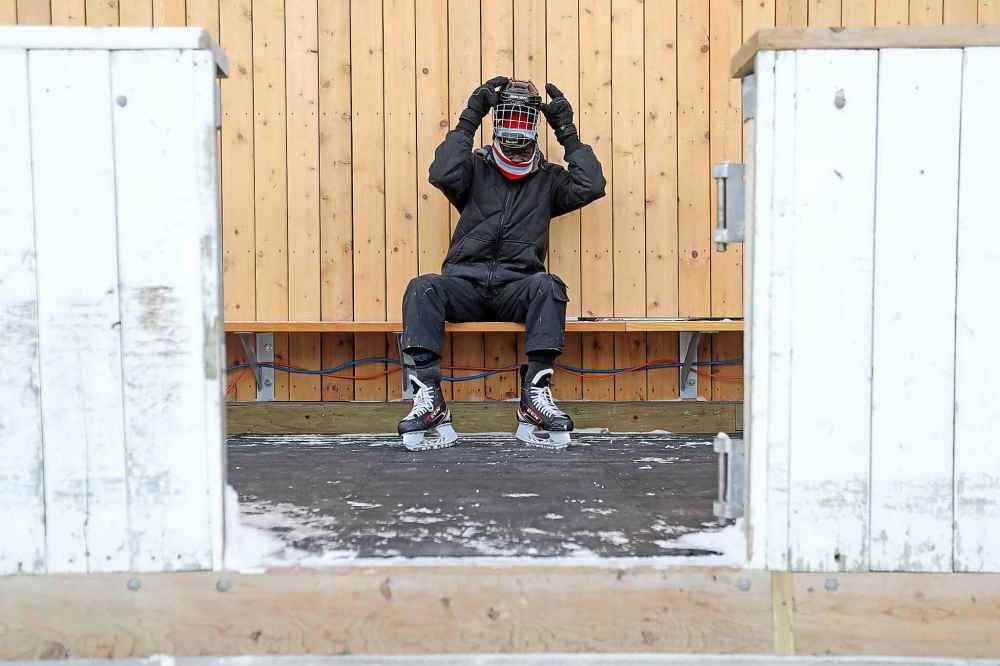 February 4 — Vincent Okumu takes off his helmut after spending some time on the ice. Okuma was taking part in the True North Foundation activities at Camp Manitou.JOHN WOODS / WINNIPEG FREE PRESS