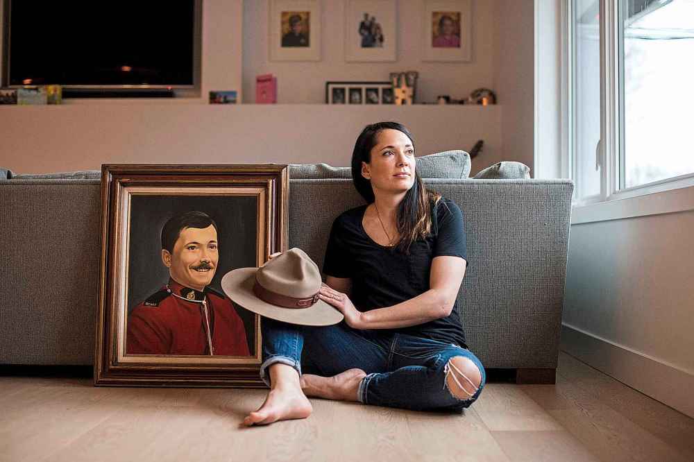 January 19 — Beck Williams with a portrait of her father, RCMP officer Dennis Onofrey and his Stetson hat at her North Vancouver home. Onofrey was killed forty-years-ago during confrontation at a motel in Virden, MB that led to a 93-hour hostage taking in Oak Lake, MB.MIKAELA MACKENZIE / WINNIPEG FREE PRESS
